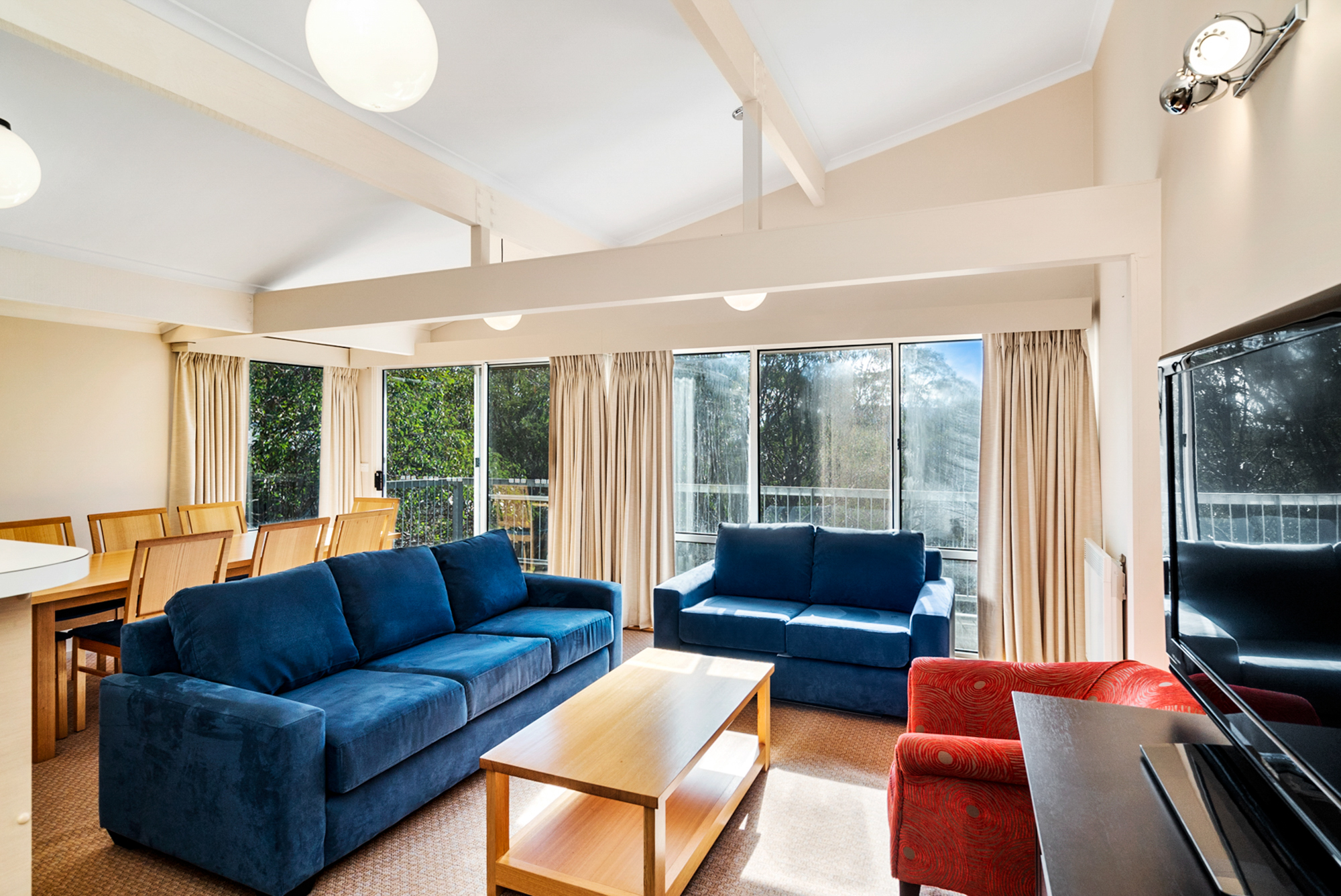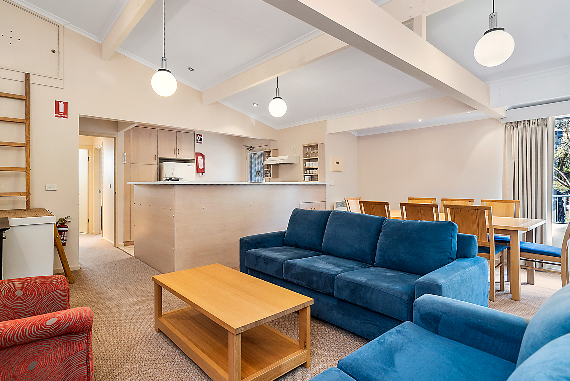 Edelweiss 2 is a 3 bedroom, 2 bathroom apartment which has a large balcony with stunning views down the valley. It is located in Christie Street, with easy access to Bogong Highplains Rd. To access the apartment you walk up the steel stairway to the right of the Accommodation Transfer Terminal to Christie Street.