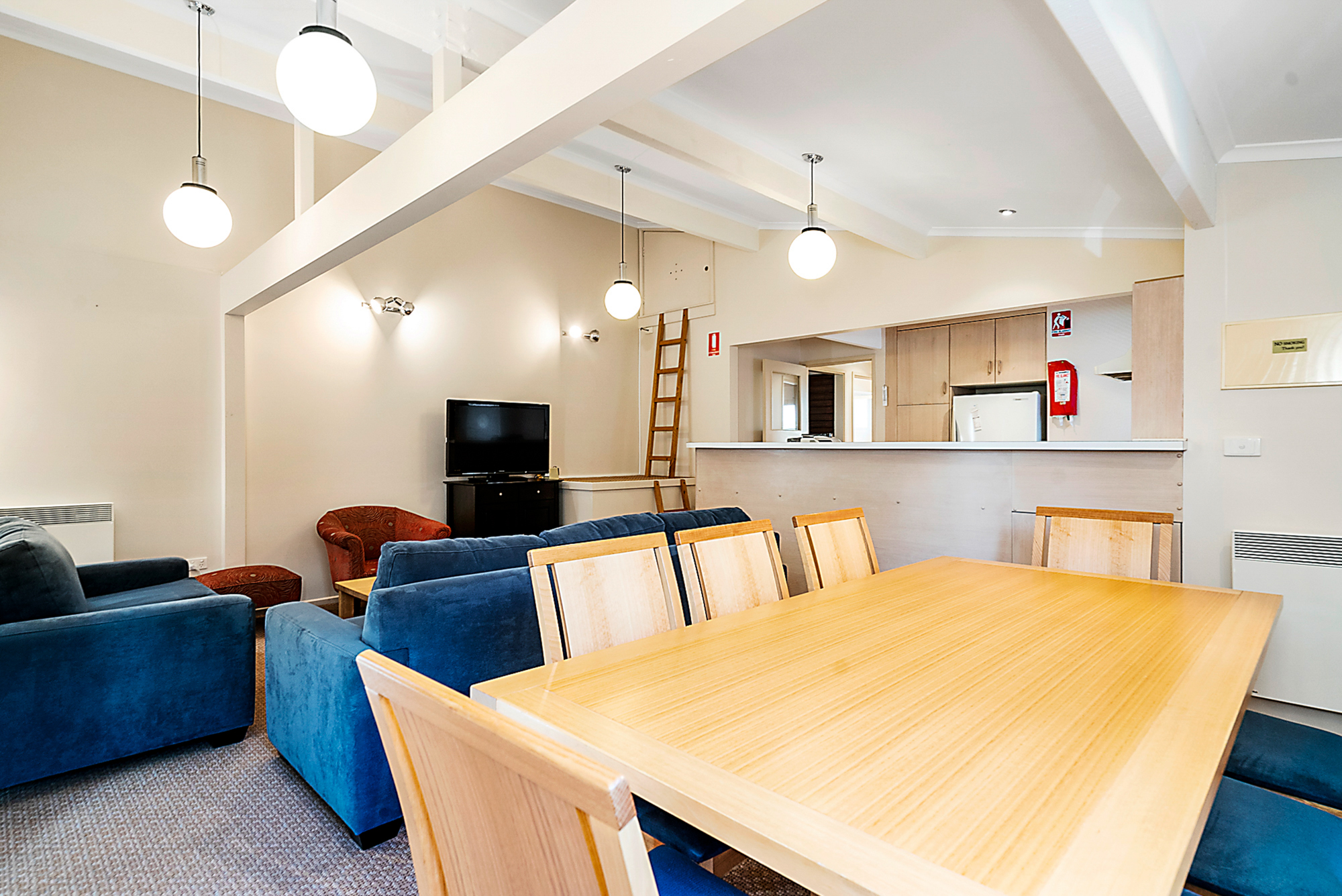 The apartment features a spacious lounge, dining and kitchen on the upper level of the apartment.