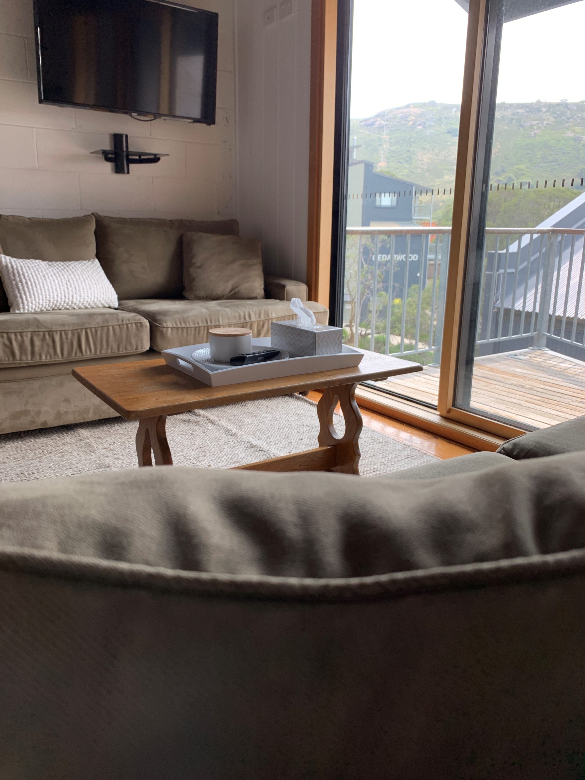 Small balcony off lounge & off double bedroom.